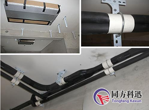 冷凝水的排水管應采用PVC給水管,其固定支架的間距小于等于1m,主管道的管徑要隨著所連接的室內(nèi)機容量的增加而逐漸加大,在安裝高度允許的情況下要保證1/100的傾斜度,以便冷凝水排出。